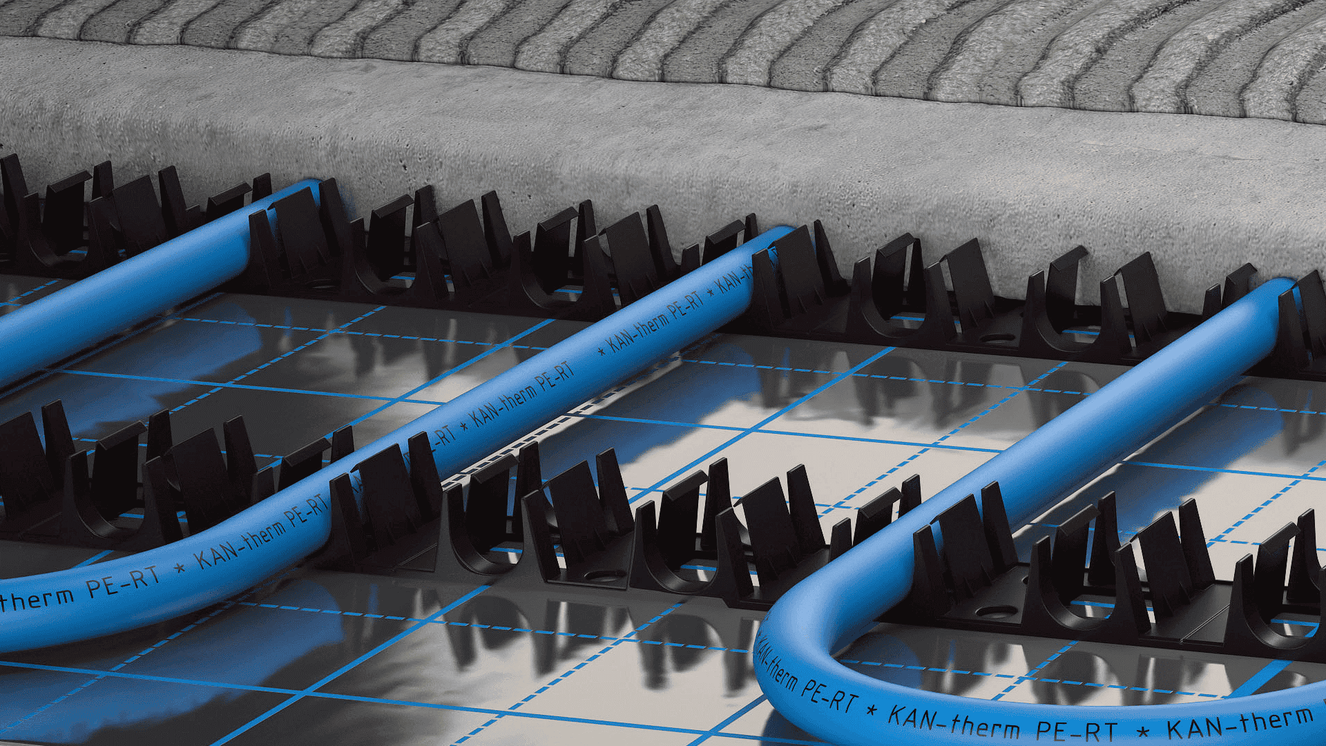 KAN-therm Rail系统中制作的地表安装结构的基本元件是固定供暖管的塑料条。