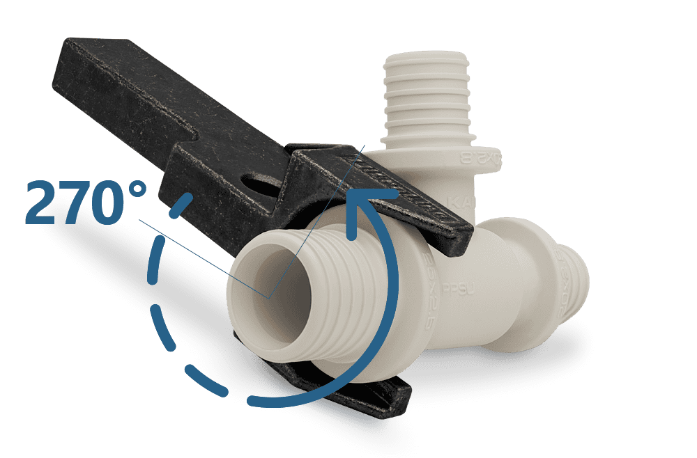 从最起初,ultraLINE的管件就是考虑到这些情况而设计生产的。 即使在很难触及的区域,也可以让管件的套口在卡钳的作用下达到270°的旋转,这使得管道连接极度简便且舒适。