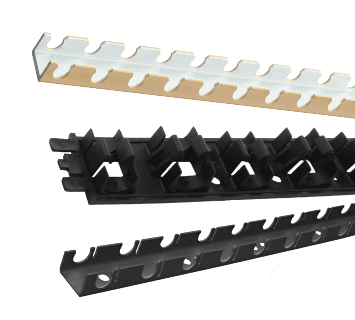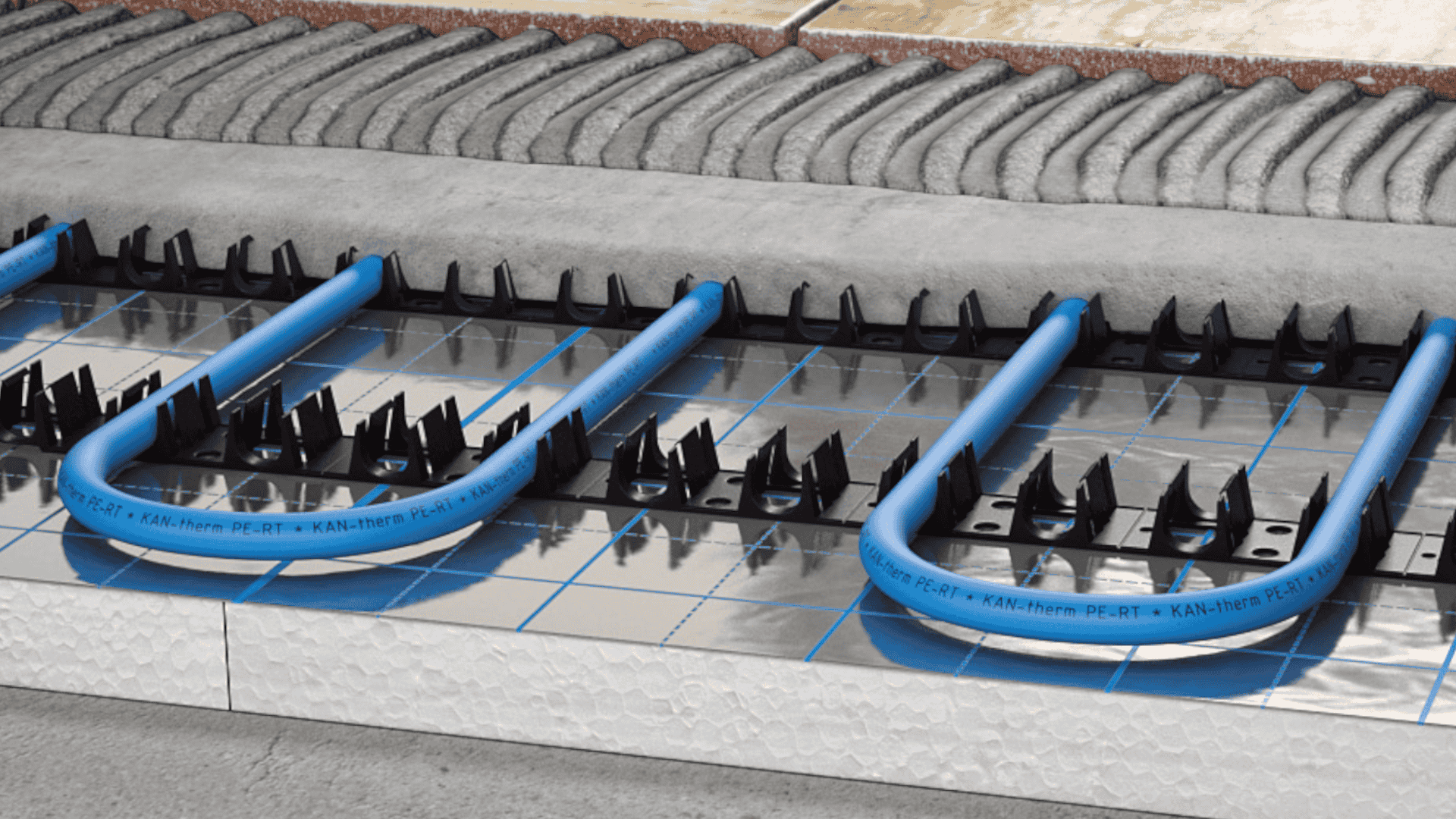 KAN-therm Rail系统基于用于固定供暖管道的特殊塑料条。塑料条可直接安装在建筑物隔墙上,无需任何额外的绝缘材料(地板、墙壁或地面),也可安装在楼宇铺设有绝缘材料的缝隙内,例如KAN-therm Tacker(地板、墙壁)。