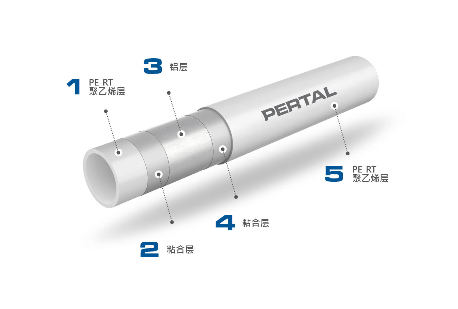 普通的PE-RT blueFLOOR、PE-X和PE-RT 2型管道的五层(5L)结构确保了EVOH阻氧层在组装过程中免受损坏。